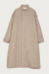 Oversized long coat in recycled wool and textured cotton. Shoulder tabs. Zip fastening in the middle of the front. Piped pockets in the front and an inside chest pocket. Adjustable tab at the cuffs with buckle. Belt in the fabric. Fully lined.