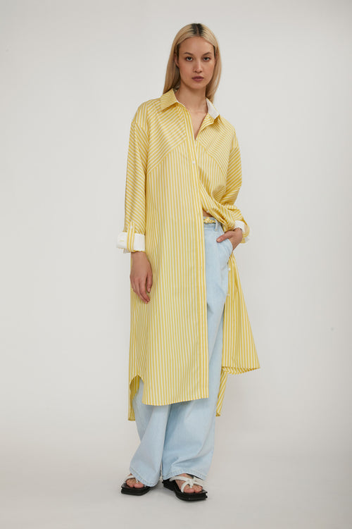 Jeu de rayures par la découpe en biais sur le haut du corps