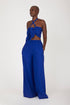 Silk bourrette knotted top. Removable straps. Can be tied in different ways. Mediterranean Blue color.