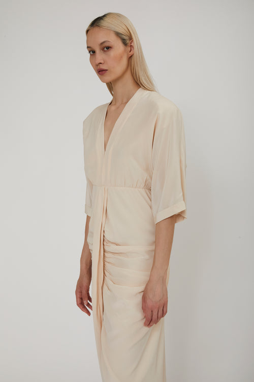 Robe longue en crêpe de soie lavé