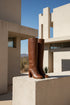Valentine Gauthier high boots with round toe in vegetable-tanned calfskin. Leather inner lining. 9cm heel. 7cm arch. Cognac color.