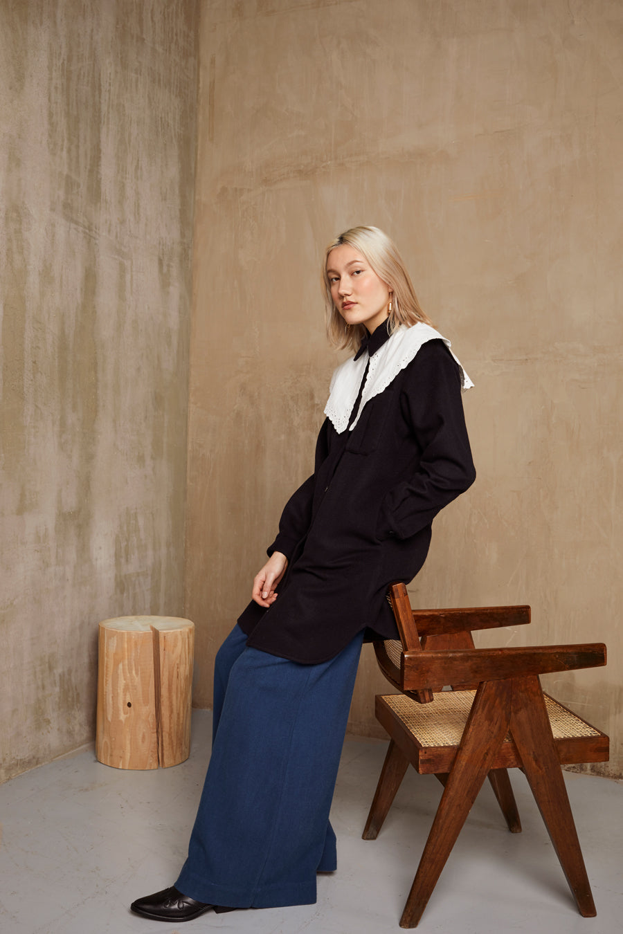 Il symbolise la réflexion spéculaire telle une emprunte entre ombre et lumière. Les pulls camionneurs oversize en baby alpaga, laine mérinos et coton biologique bousculent les codes et complètent cette dualité.