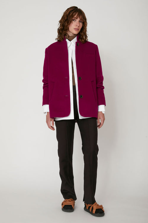 Col tailleur et fermeture simple sur le milieu devant par des boutons en corne fabriqués en France