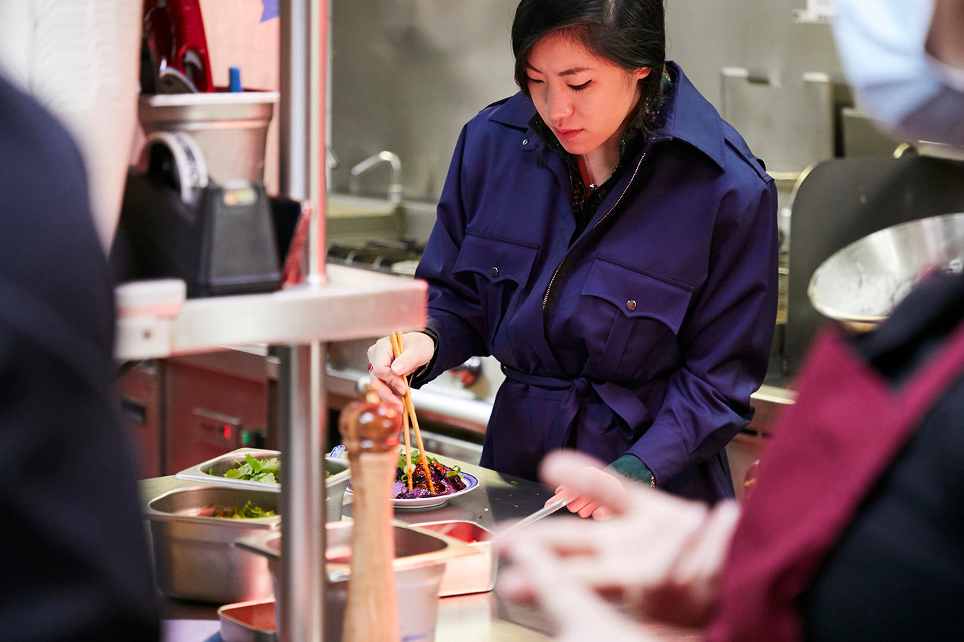 J’ai 31 ans je suis franco-chinoise et j’ai suivi un parcours scolaire classique en étant le vrai cliché de l’élève asiatique bonne élève ! J’ai donc intégré une prépa et fait une école de commerce. J’ai commencé ma carrière dans la mode, chez Chanel, ce qui était formidable car je suis depuis toujours, fascinée par la mode, par le savoir-faire et l’artisanat de luxe français. Après un an je suis partie pour une société de conseil, je travaillais pour des entreprises du CAC 40. C’était intéressant intellectuellement car j’étais confrontée à des entreprises très différentes les unes des autres et cette diversité comblait ma soif d’apprendre. Comme mes parents avait une maroquinerie dans le centre de paris, je les observais gamine, tout en jouant avec les cartons, et très vite monter mon propre projet est devenu une évidence ! Je me suis tournée vers la cuisine, ce qui était une reconversion totale, car je n’y connaissais rien! J’ai commencé comme serveuse chez PNY, puis le fondateur Rudy m’a proposé de les accompagner en tant que bras droit. J’avais en tête de monter un restaurant chinois cool à Paris, je voulais redorer le blason de cette cuisine très riche et variée, et casser les clichés. Quand j’étais enfant, ma mère ne cuisinait que chinois et j’étais trop contente d’aller à la cantine et de manger des frites ! Pour bien connaître et apprendre la cuisine chinoise je suis allée en Chine ou j’ai fait le tour des régions, puis j’ai appris à cuisiner avec des chefs chinois à Shanghai. En fait, c’est là-bas que j’ai élaboré la carte de mon futur restaurant ! Quand j’ai décidé d’ouvrir mon restaurant Petit Bao, mes parents étaient assez dépités, ils ne comprenaient pas mon choix alors que j’étais bac plus 5 ! ils imaginaient une vie différente pour moi! Ouvrir un restaurant n’était pas un métier assez noble à leurs yeux. Je ne leur ai d’ailleurs pas dit tout de suite que j’ouvrais Petit Bao !